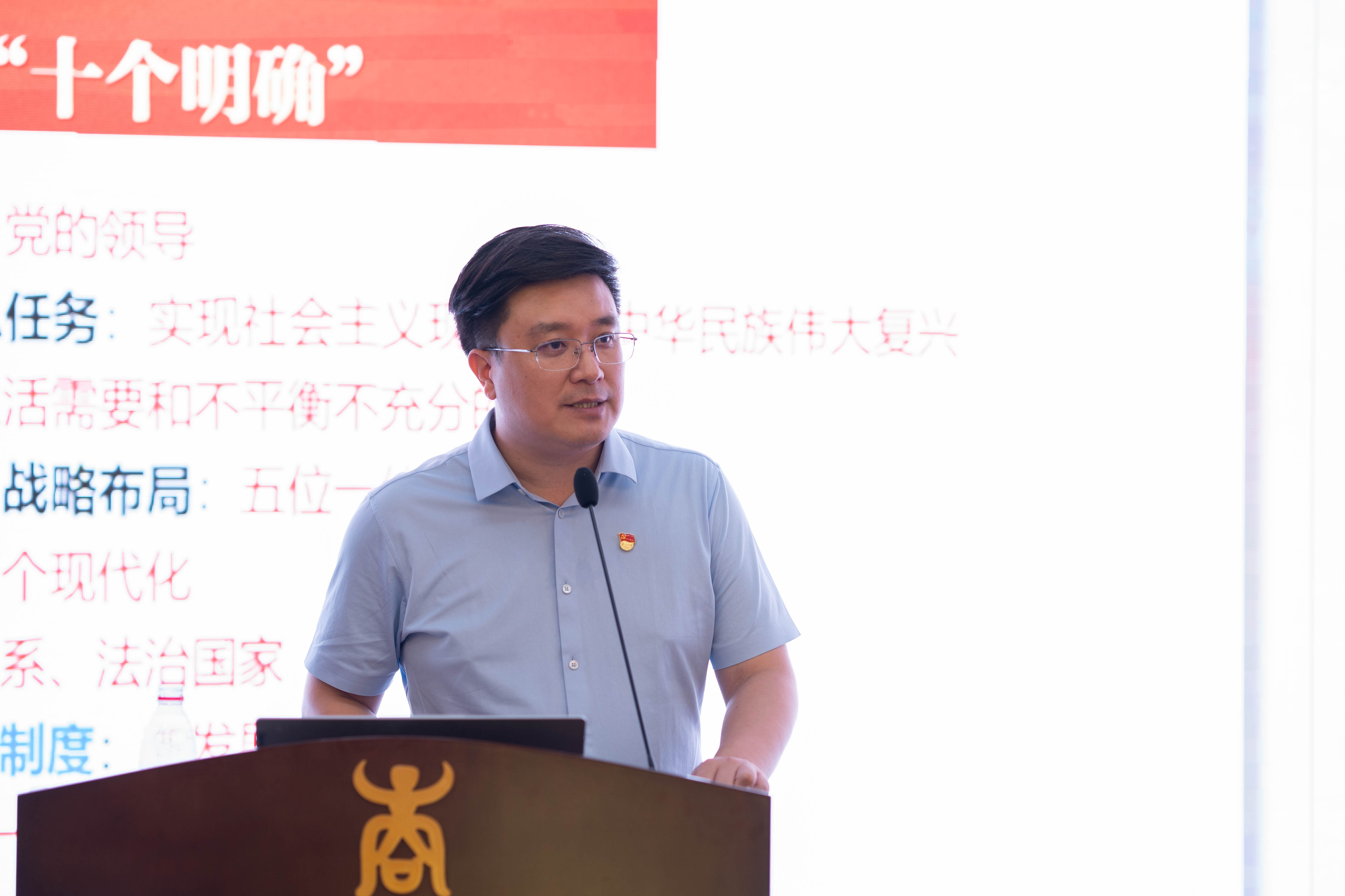 公司党委副书记黄晋以《学习贯彻习近平新时代中国特色社会主义思想,争当中华民族复兴大任的时代新人》为题,在公司128报告厅为研究生第二党支部、本科生第二、第五党支部讲授专题党课。他通过举实例,与同学们互动的方式,带领同学们系统理解了如何牢牢把握主题教育“学思想、强党性、重实践、建新功”的总要求,并勉励大家要“敢想敢为又善作善成”。