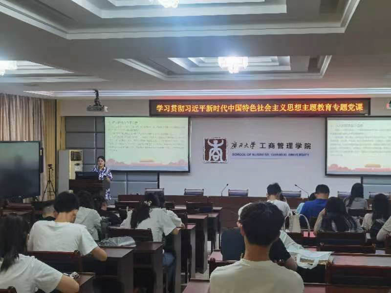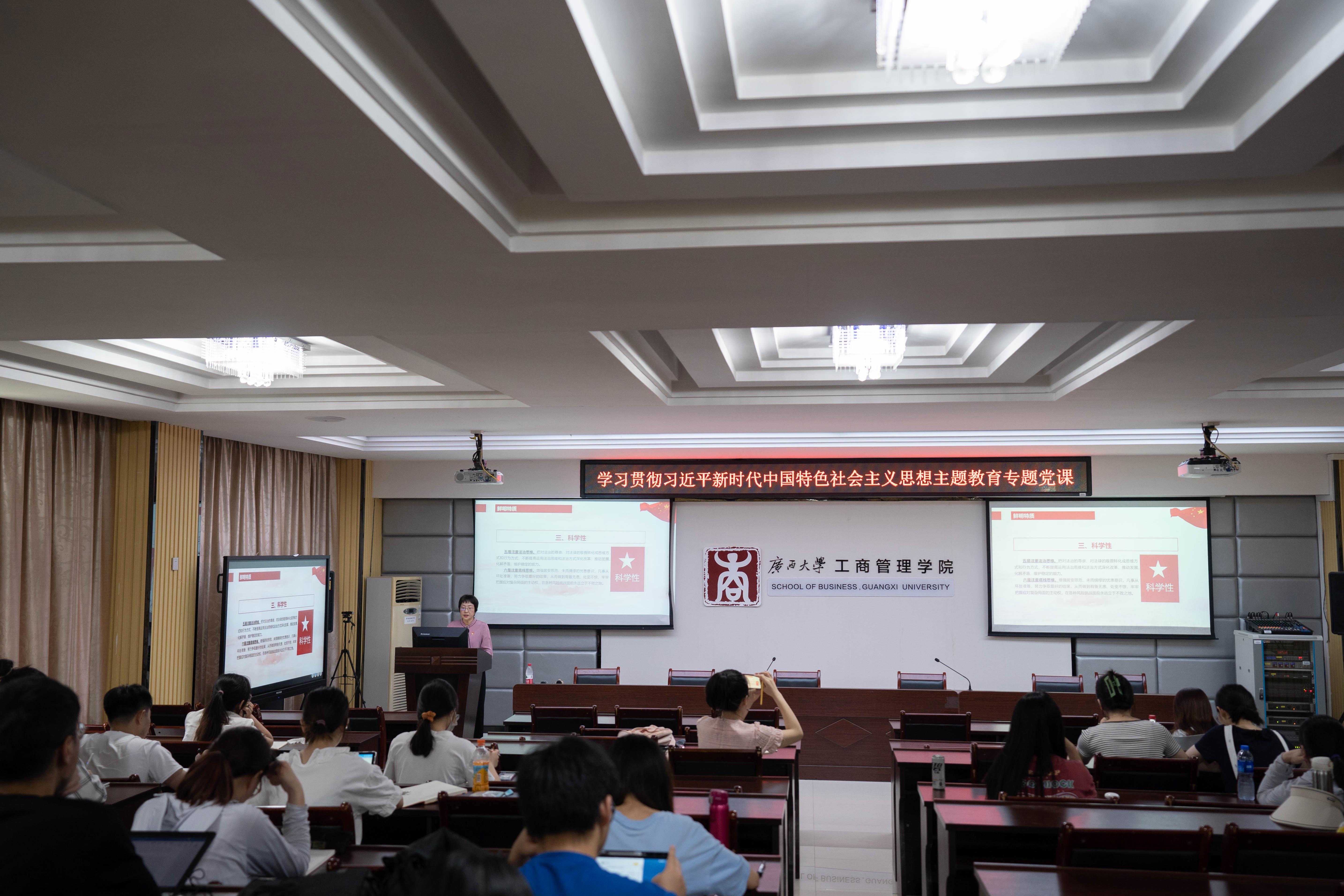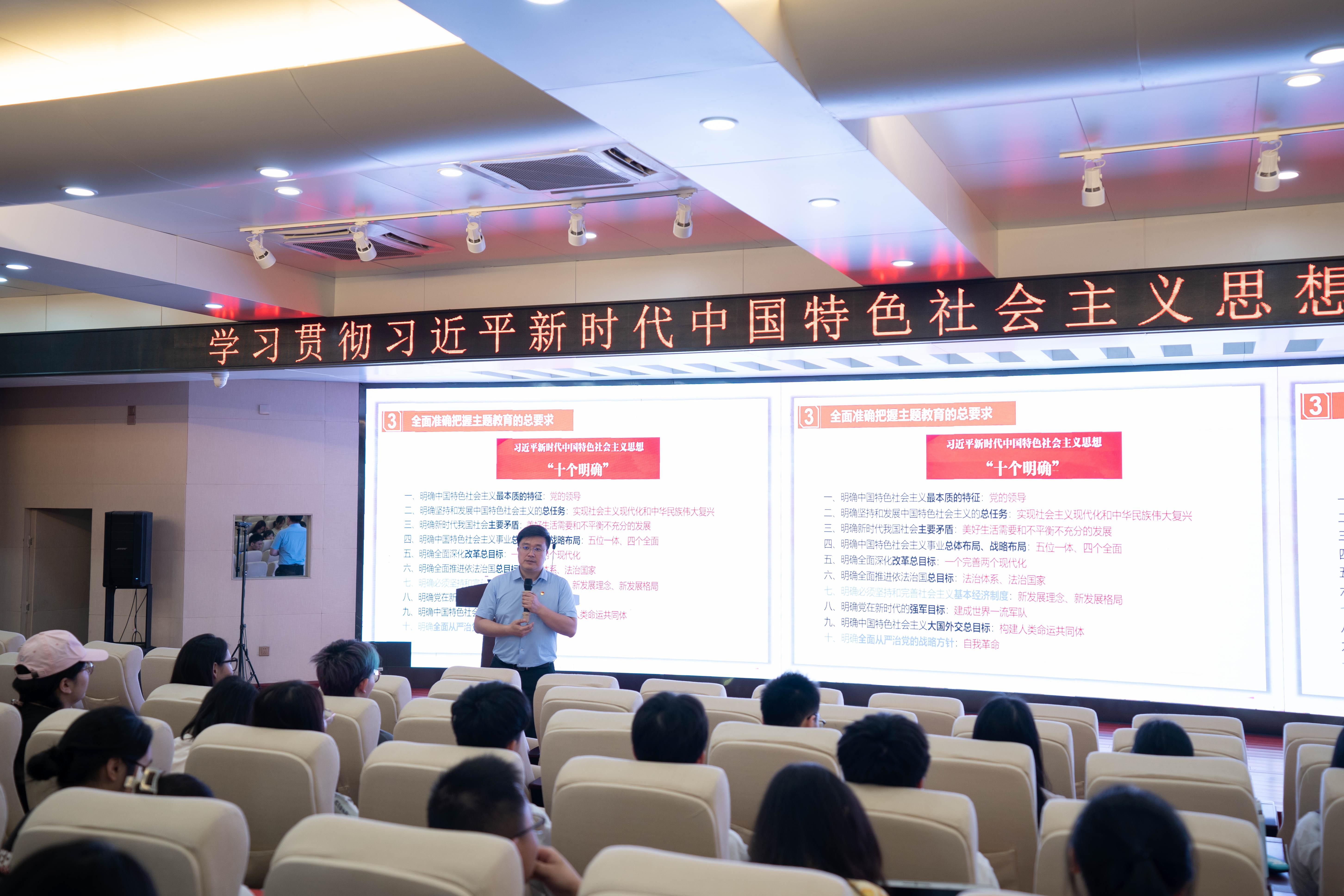 公司副经理廖东红以《学习贯彻习近平新时代中国特色社会主义思想》为题,在公司124报告厅为研究生第一党支部和本科生第四党支部讲授专题党课,她就习近平新时代中国特色社会主义思想主题教育概述、主要内容以及鲜明特质进行了阐述。她号召大家以主题教育为契机,深入学习贯彻党的二十大精神,努力把公司建成“区域有品牌,国内有特色,国际有影响”的新时代高水平威廉希尔体育。