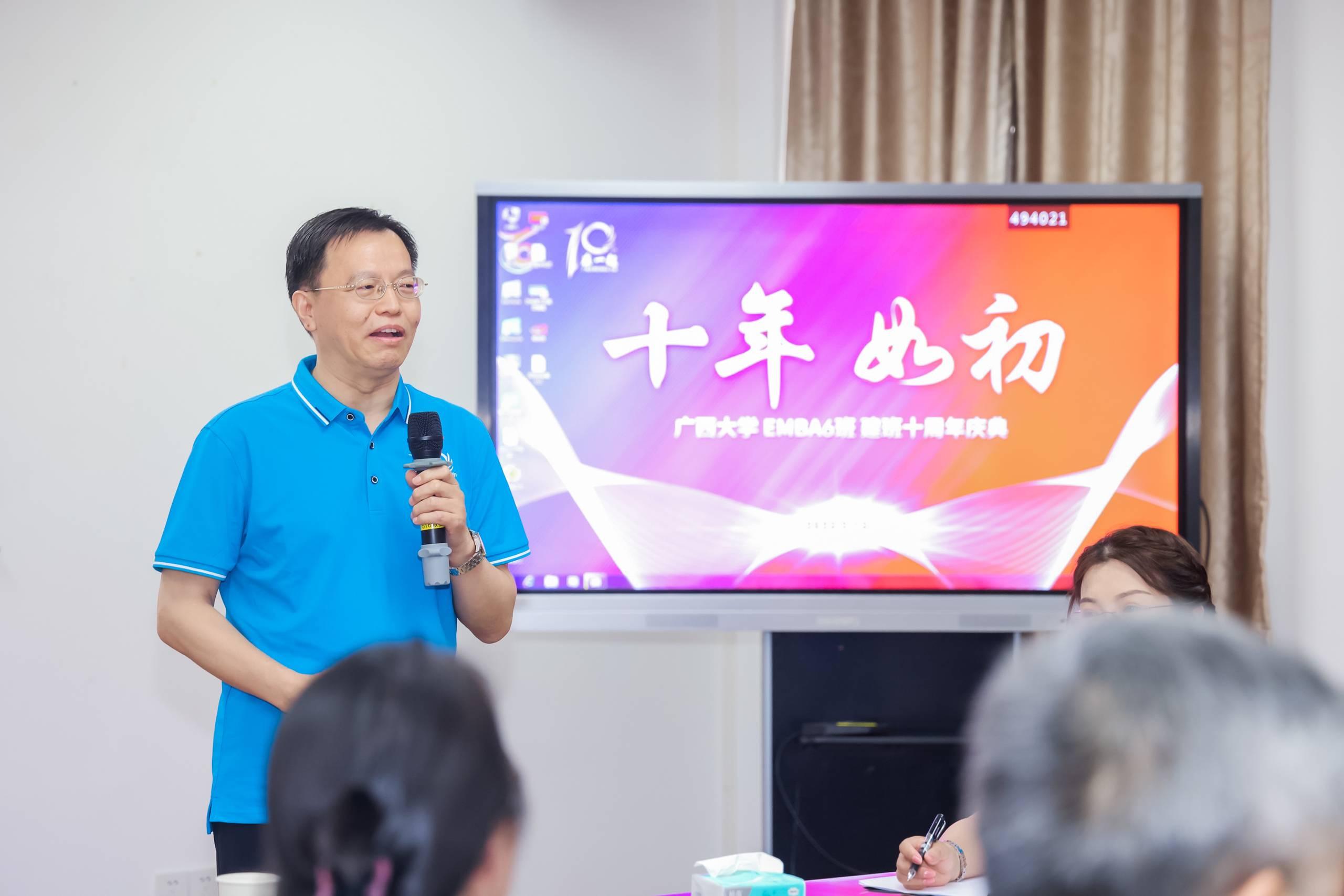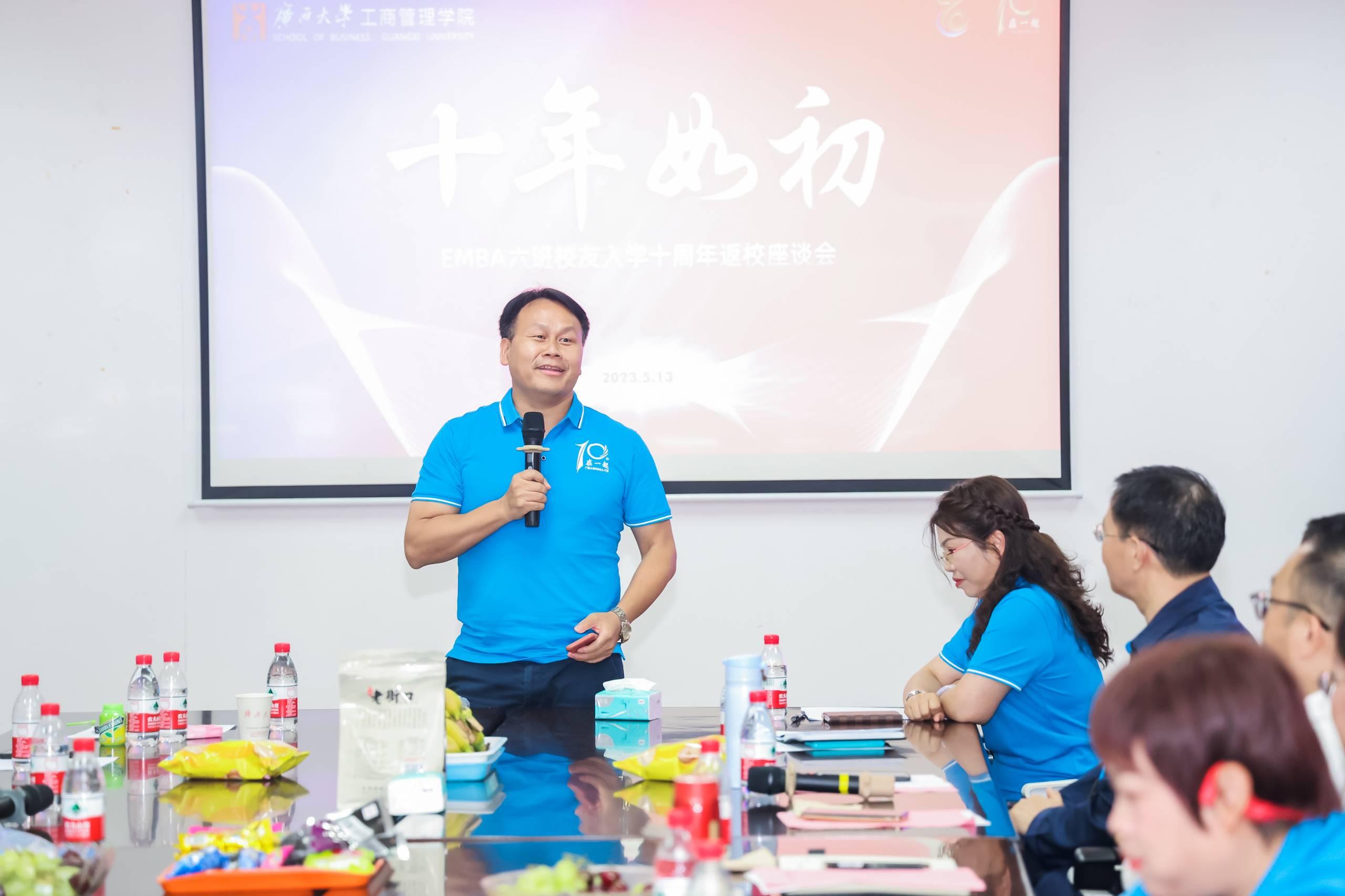 罗诚书记首先代表公司党委、行政对返校的EMBA六班员工们表示了热烈的欢迎和诚挚的问候,并向大家介绍了十年来公司以及EMBA教育的变化与发展,以及在团队建设、教学科研和人才培养等方面取得的佳绩。罗书记强调,母校是员工永远的家园,员工力量是母校建设发展的坚强基石。他希望员工们能一如既往地关心和支持母校,凝心聚力,共同推动公司事业的蓬勃发展,也欢迎员工们常回母校走走,常回公司看看。