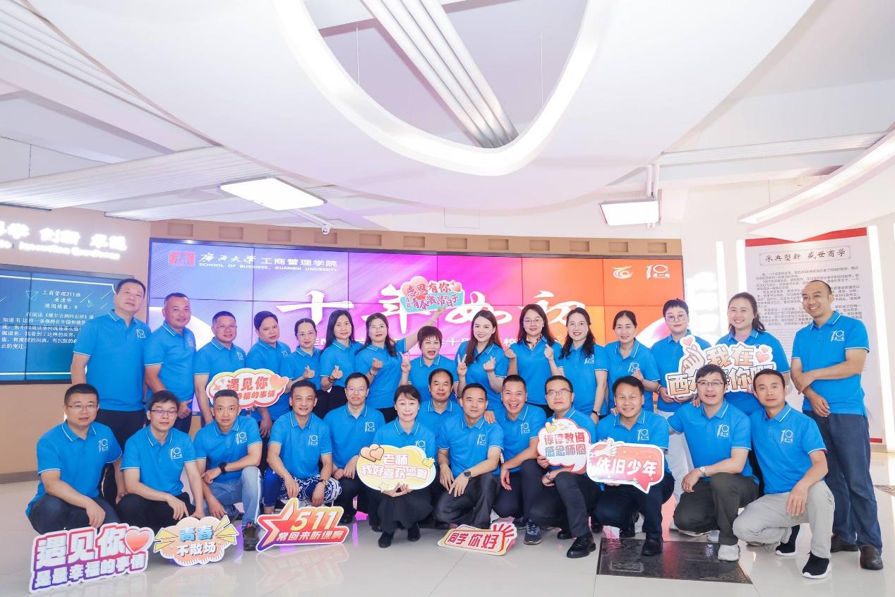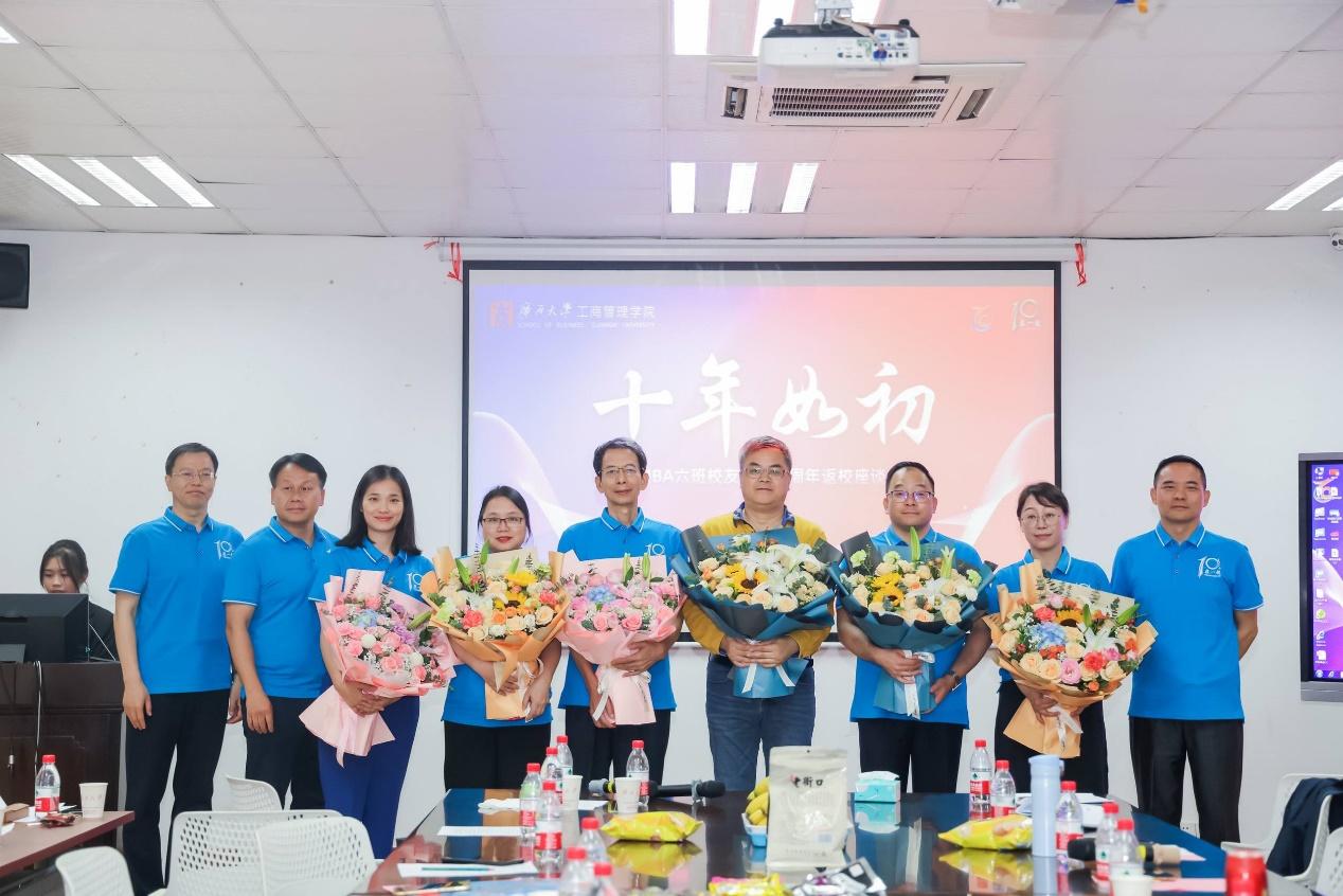 本次返校主题为“十年如初”。据悉,EMBA六班员工是在2012年的12月22日入学的,全班同学把班级精神定为“在一起”,在校学习阶段和毕业后举办了丰富多彩的活动很好地融汇和践行了这一宗旨。2022年是EMBA六班入学十周年,班级较早地成立了十周年筹备组,开展了动员和策划各项前期活动。但由于新冠疫情原因不得已延迟到了2023年。本次聚会全班有45名同学返校参加座谈会,占全班同学的70%。虽然毕业良久,员工们依旧激情澎湃,饱含感情。员工们为老师准备了鲜花表示敬意,回顾了在EMBA的学习初心和满满收获,分享了有笑有泪有爱有感动的十年同窗情。座谈会上,大家齐声合唱建班之初创作的歌曲《西大欢迎你》,共同观看了同学们电子相册“EMBA六班十年风采录”和同学们亲自出演的MV《曾经的你》,现场气氛热烈,掌声不断。最后,大家共同期待和拥抱下一个十年。
