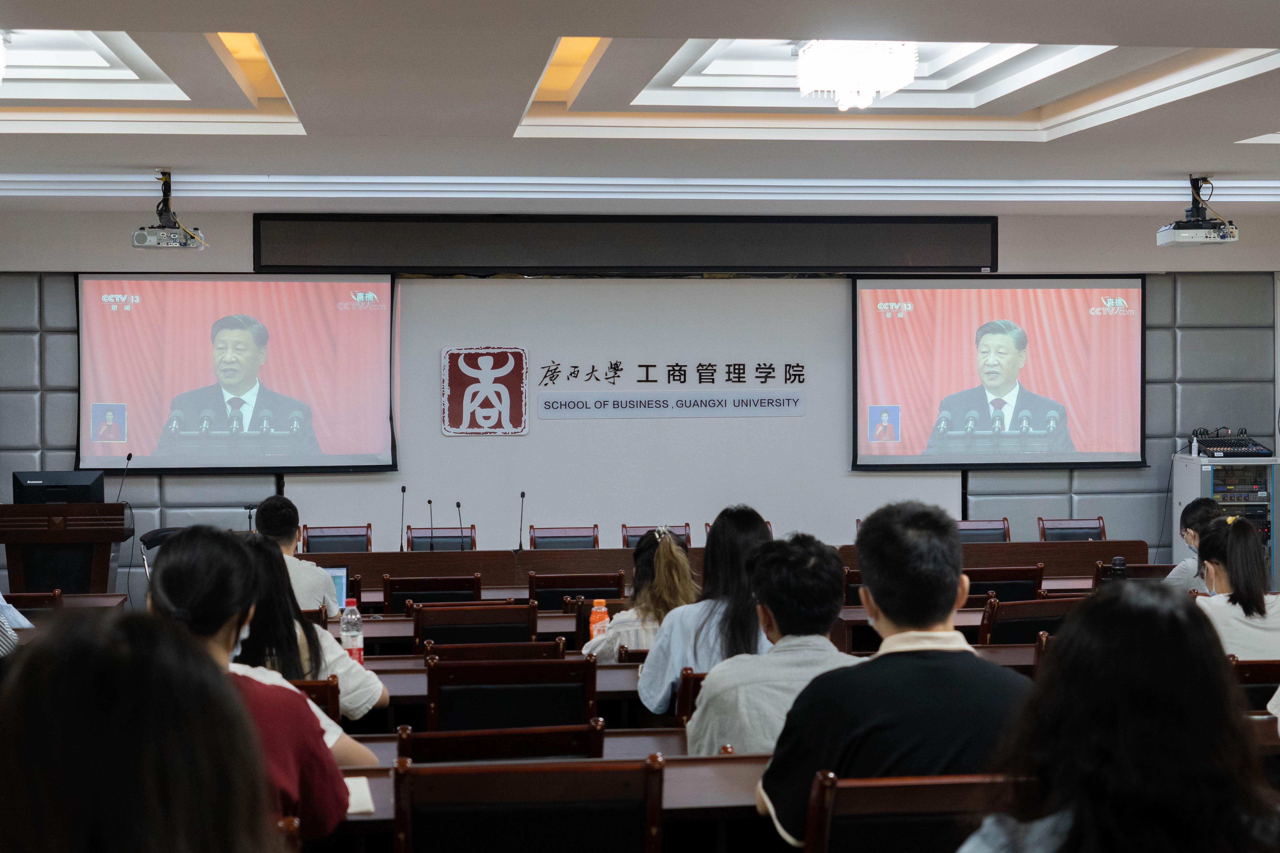 公司党员干部、教师代表在128报告厅集中收看党的二十大开幕盛况