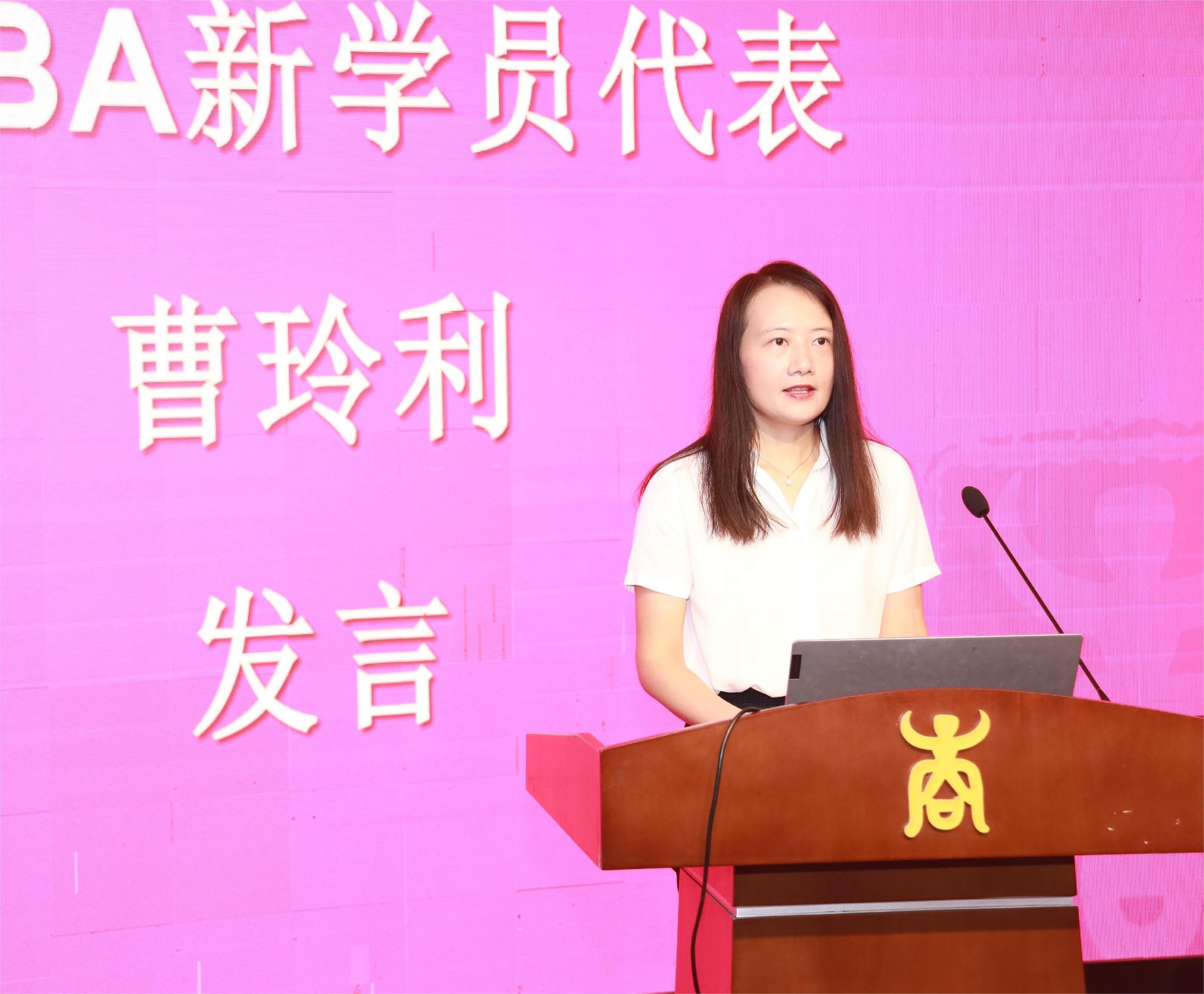 新学员代表曹玲利表示学习机会来之不易,同学们应当倍加珍惜,学有所成。在未来两年的学习中她将会做到:一是明确目标,努力学习,提升管理能力;二是知行合一,学以致用,回馈社会。最后她表示要紧跟公司的步伐,牢记公司的校训“勤恳朴诚、厚学致新”,努力奋斗,力争成为管理领域的领袖和社会的精英。