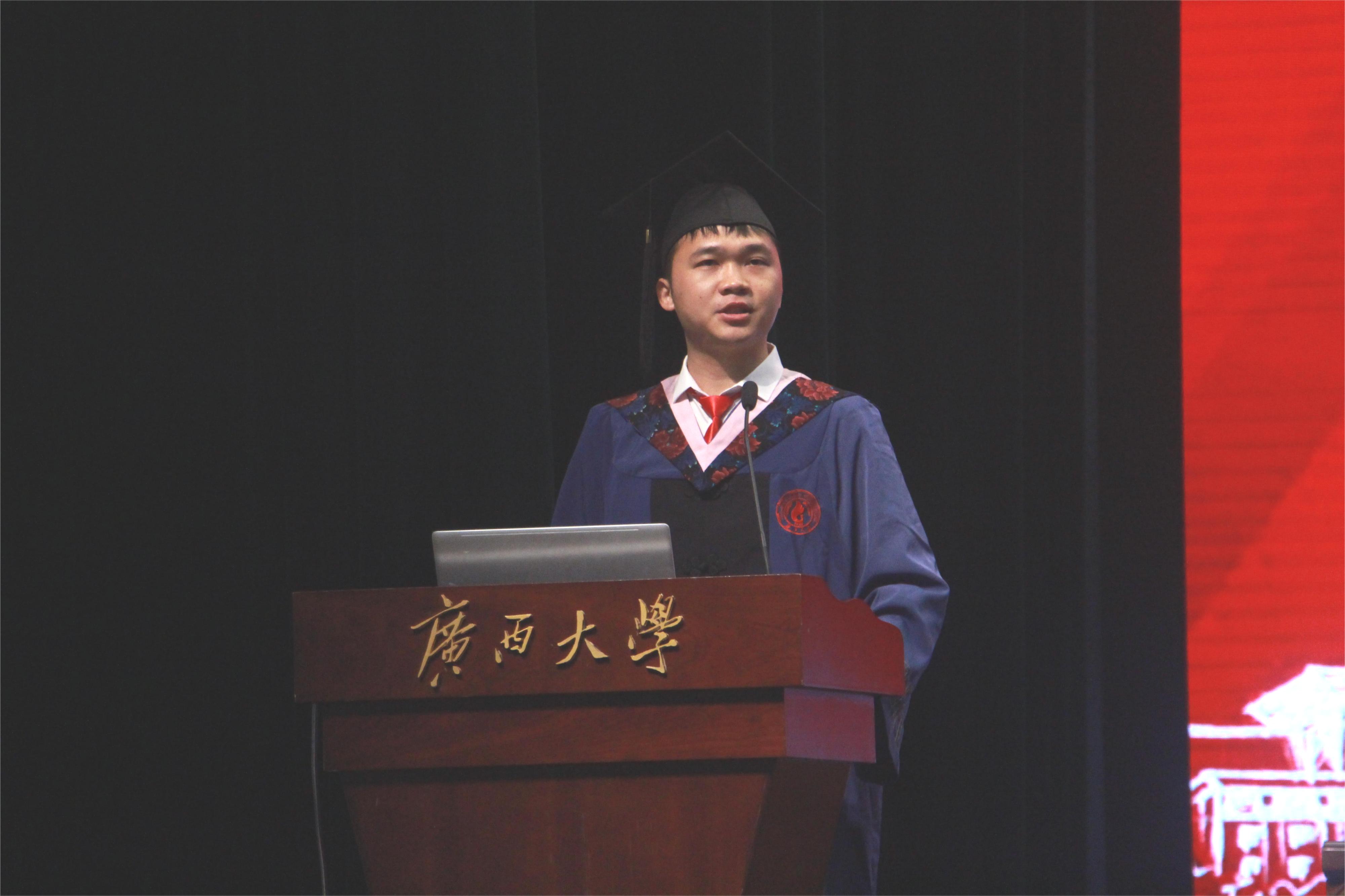 毕业研究生代表付晓同学谈到了进入威廉希尔体育的初心是“威廉希尔体育不仅教会我博采众长、挑战自我,更教会我勤恳朴诚、厚学致新的人生态度”。他表示,丰富多彩的研究生生活是一个熔炉,熔炼出每个人与众不同的个性和品格。他对公司、公司和老师们的栽培表示深深的感谢,为即将毕业的同学们送上了美好的祝福:愿同学们能以梦为马,不负韶华。