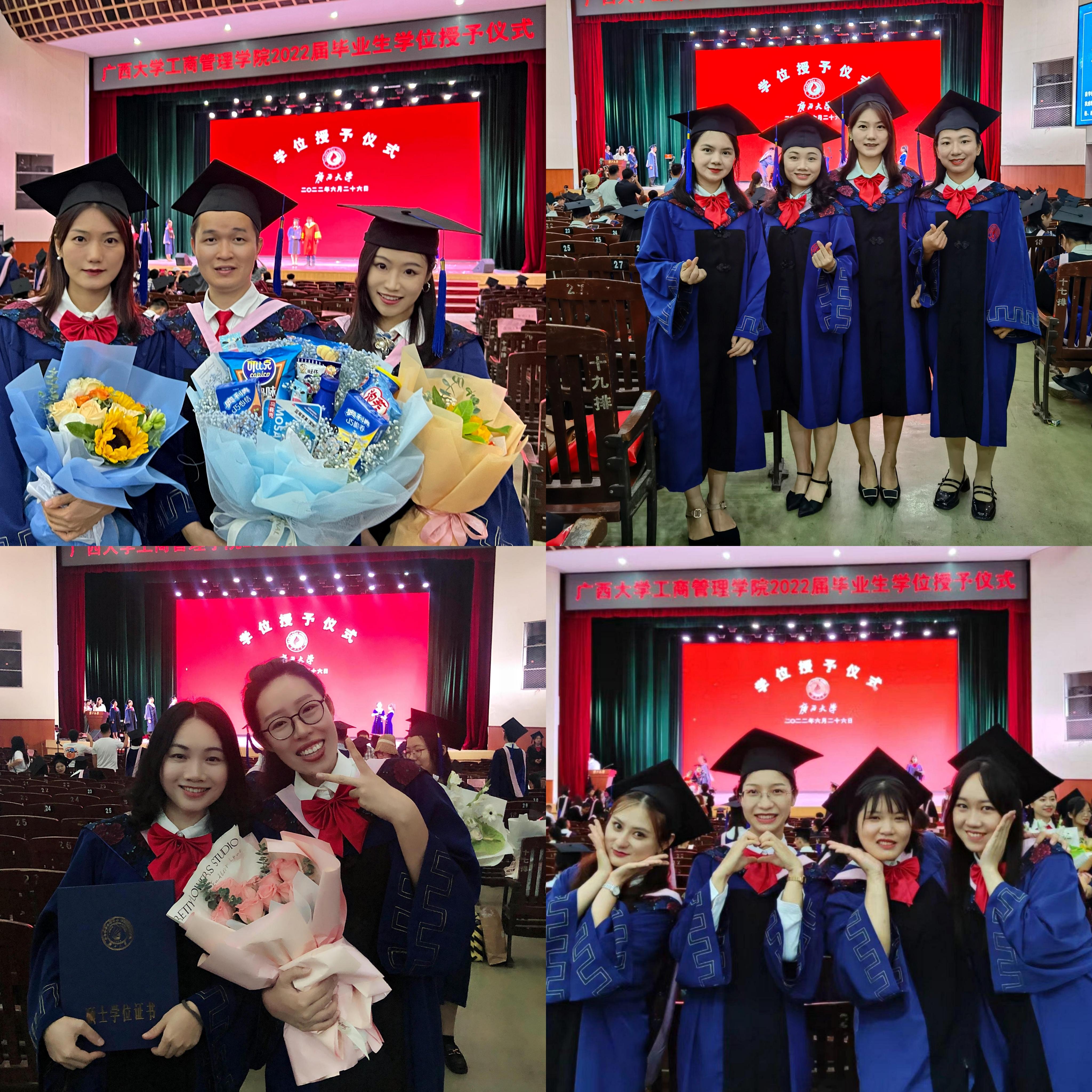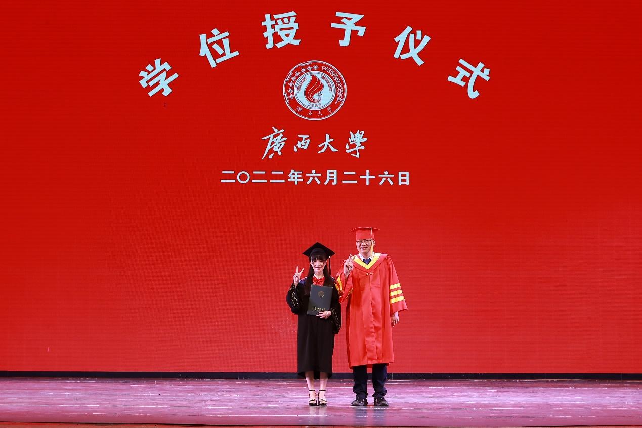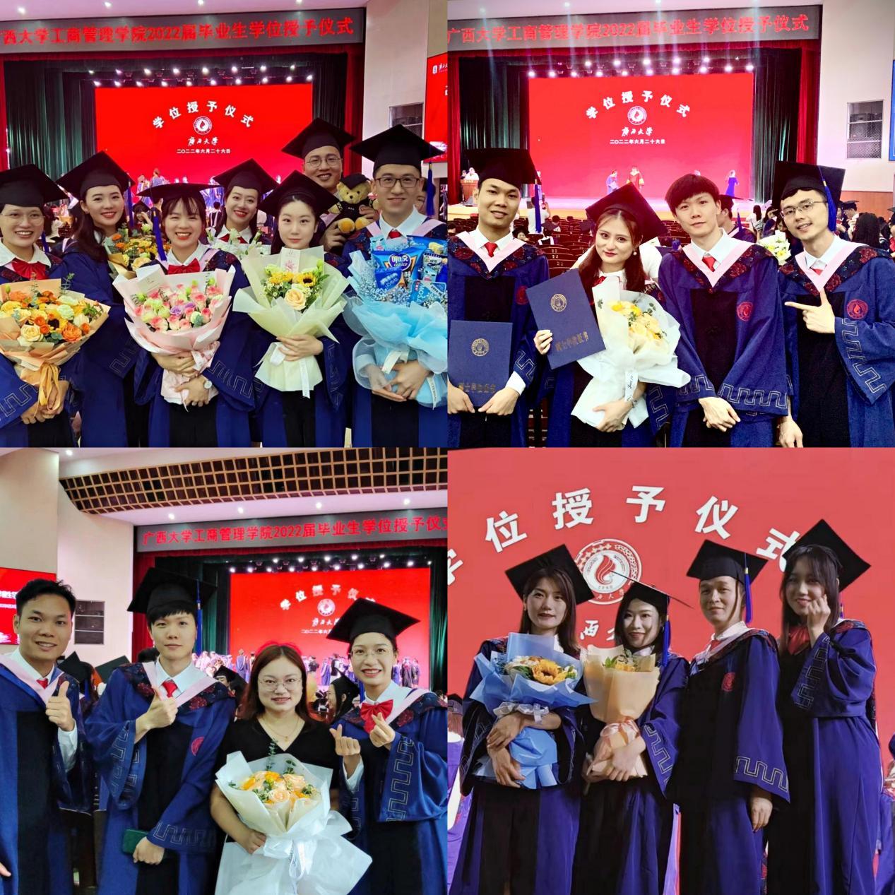 朱帮助经理为毕业生发放学位证书并合影留恋