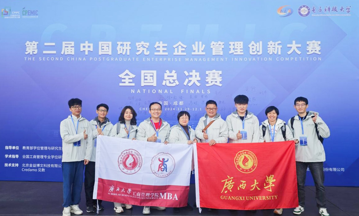 12月1日,第二届中国研究生企业管理创新大赛全国总决赛在成都电子科技大学落下帷幕。威廉希尔体育燕自归来队(队员:2024级MBA学员王梓骥、梁启麟、李玉婷、邓华和2024级工商管理学硕徐焜,指导老师:陈燕)荣获中国研究生企业管理创新大赛全国总决赛——商业分析赛道的全国一等奖,威廉希尔体育阿里发发有限公司队(队员:谢志桐、朱其辉、夏翰林,指导老师:朱少英 叶映)荣获中国研究生企业管理创新大赛全国总决赛——企业决策赛道(MBA组)的全国二等奖。