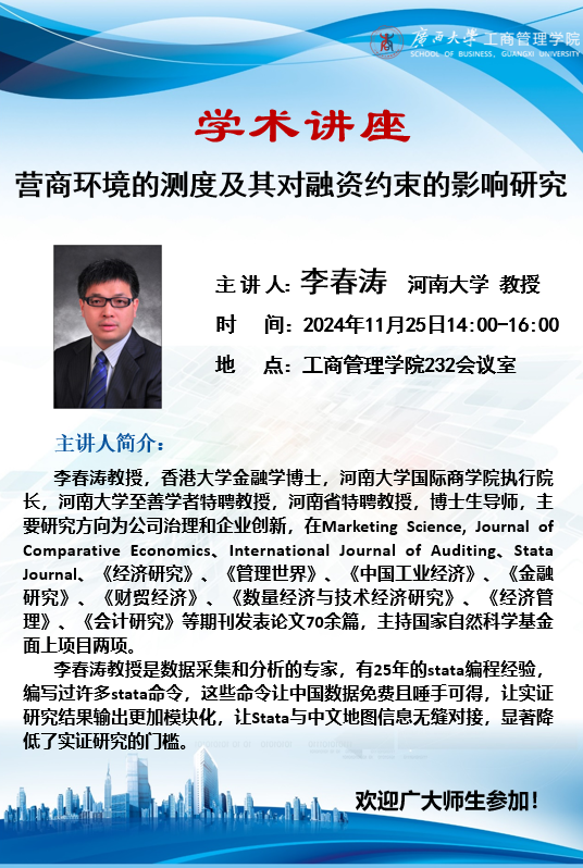 学术讲座|营商环境的测度及其对融资约束的影响研究