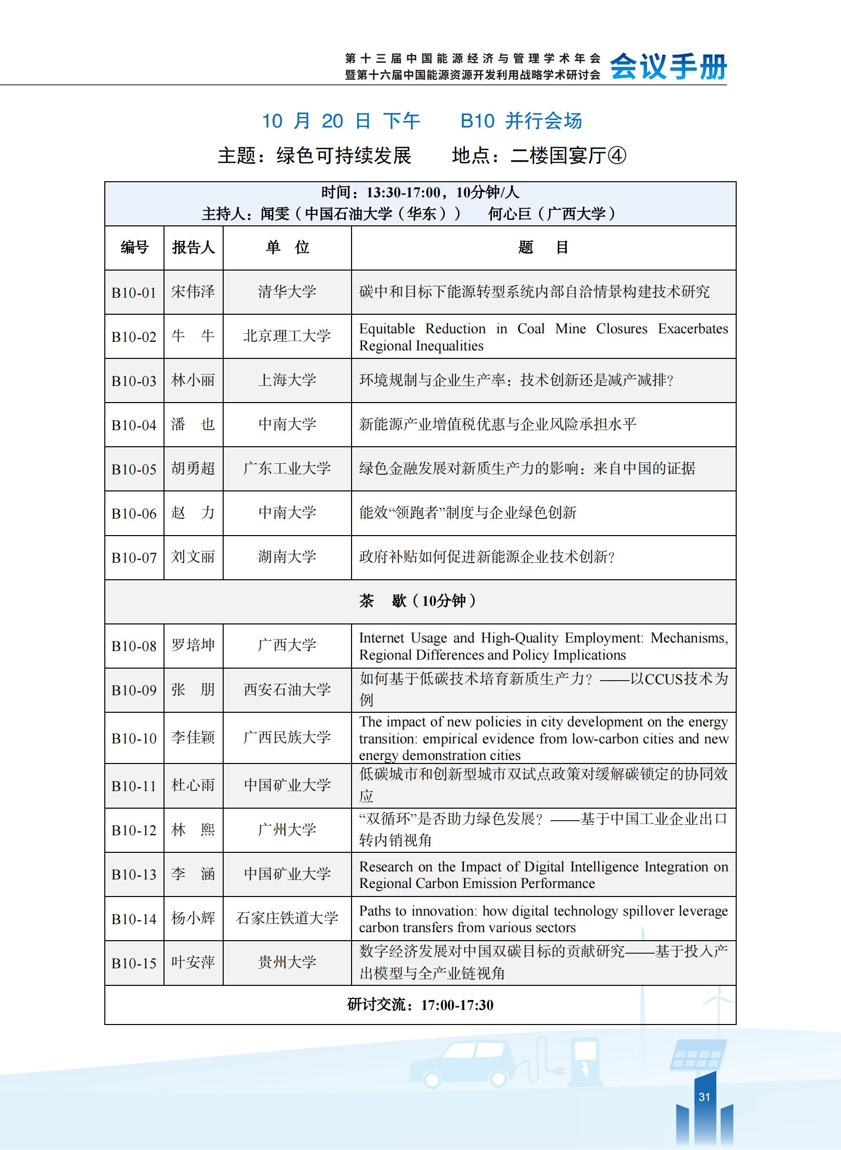 第十三届中国能源经济与管理学术年会暨第十六届中国能源资源开发利用战略学术研讨会会议手册