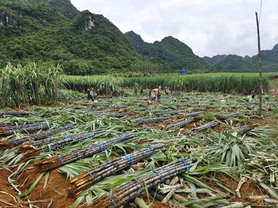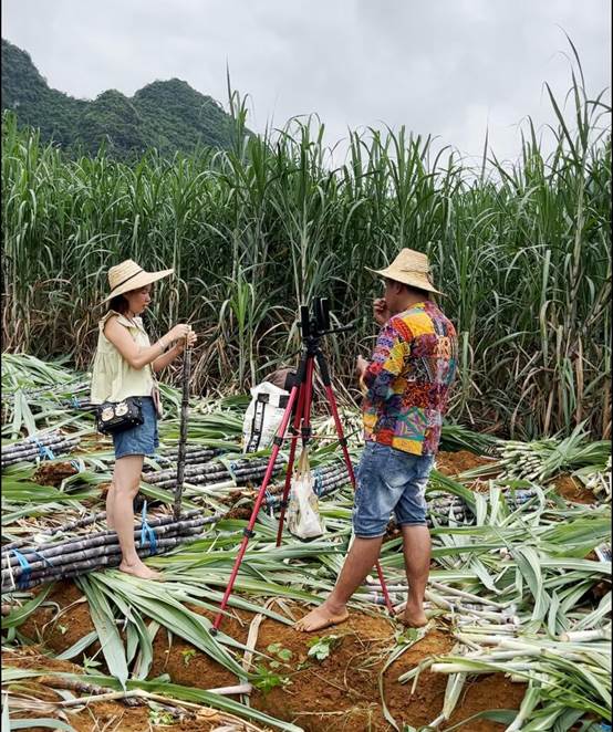 (实践团成员们在挖甘蔗)