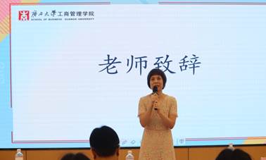 紧接着,岑汉成老师就23级新成员由本科生变成研究生身份的转变提出了自己的建议。岑老师表示,加入研会对于同学们适应身份转换是非常有帮助的,能让新成员更快的融入公司。随后,他指出,研究生做学术是一个偏向孤独的旅程,但如果同学们加入不同的组织并体验不同的组织文化,对于提升同学们适应公司,加强就业竞争力都是非常有帮助的。最后,岑老师对研会的工作表示了肯定,并表明服务他人的过程也是成就自己的过程。