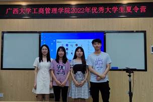 7月7日上午,企管系王玻副教授为同学们带来工商管理专业知识讲座,为营员们了解专业知识打开了一扇窗,受到了同学们好评。讲座后,各小组展示作业成果。本次夏令营根据营员的发展潜力、英语口语表现、文献综述作业、团队作业展示等环节综合考核,评选出1个最佳小组及10名优秀营员(见表1)。至此,为期三天的2022年优秀老员工夏令营活动圆满结束。