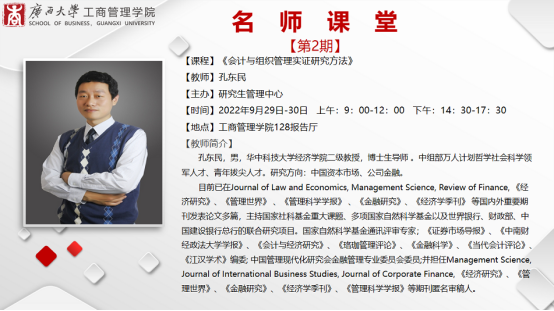 2022年9月29日到30日,公司邀请华中科技大学经济公司二级教授、博士生导师孔东明到校讲授《会计与组织管理实证研究方法》。孔教授以“实证研究中的因果识别”为主题,在威廉希尔体育128报告厅为公司师生带来了一场别开生面的实证研究方法课堂。