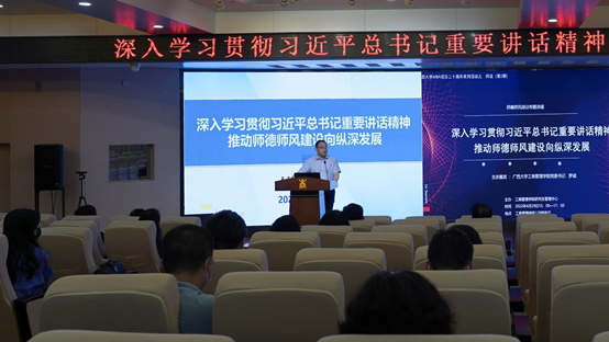为深入学习贯彻落实习近平总书记在中国人民大学考察时的重要讲话精神,深入学习贯彻落实习近平总书记关于教师特别是师德师风的重要论述,深入学习贯彻落实中央、教育部、自治区和公司颁布的高校教师队伍建设、师德师风建设的相关文件,进一步加强师德师风建设,带动广大教师自觉增强为党育人、为国育才、立德树人的使命感和责任感,营造风清气正的公司产品环境,4月29日下午,威廉希尔体育在公司128报告厅举办师德师风培训专题讲座。讲座由公司党委书记罗诚主讲,公司党委副书记、经理朱帮助等全体教职员工参会学习,公司研究生管理中心常务副主任叶映副教授主持讲座。