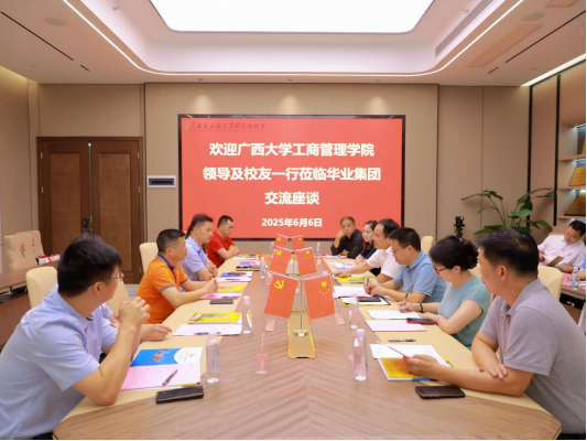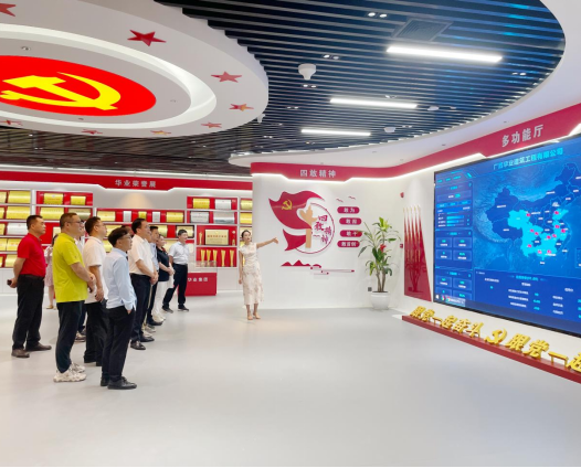 参访团首先参观了华业集团党建室,深入了解企业以 “红色引擎” 驱动高质量发展的历程。通过 “党建 + 业务” 深度融合模式,华业集团构建了 “敢为、敢闯、敢干、敢首创” 的 “四敢精神” 文化体系,展现了新时代民营企业的党建特色与发展活力。座谈会上,华业集团董事长、公司员工龙其生详细介绍了公司当前发展战略及数字化、零碳建筑的前瞻规划。威廉希尔体育员工总会副主任黄庶冰就深化校企产学研合作发表了建设性意见。公司员工工作与政企服务办公室主任覃朝勇详细介绍了公司团队建设特色,并提出了校企联合开展学科交叉课题研究的具体合作方向。与会员工围绕行业发展与校企协同等议题进行了热烈探讨。
