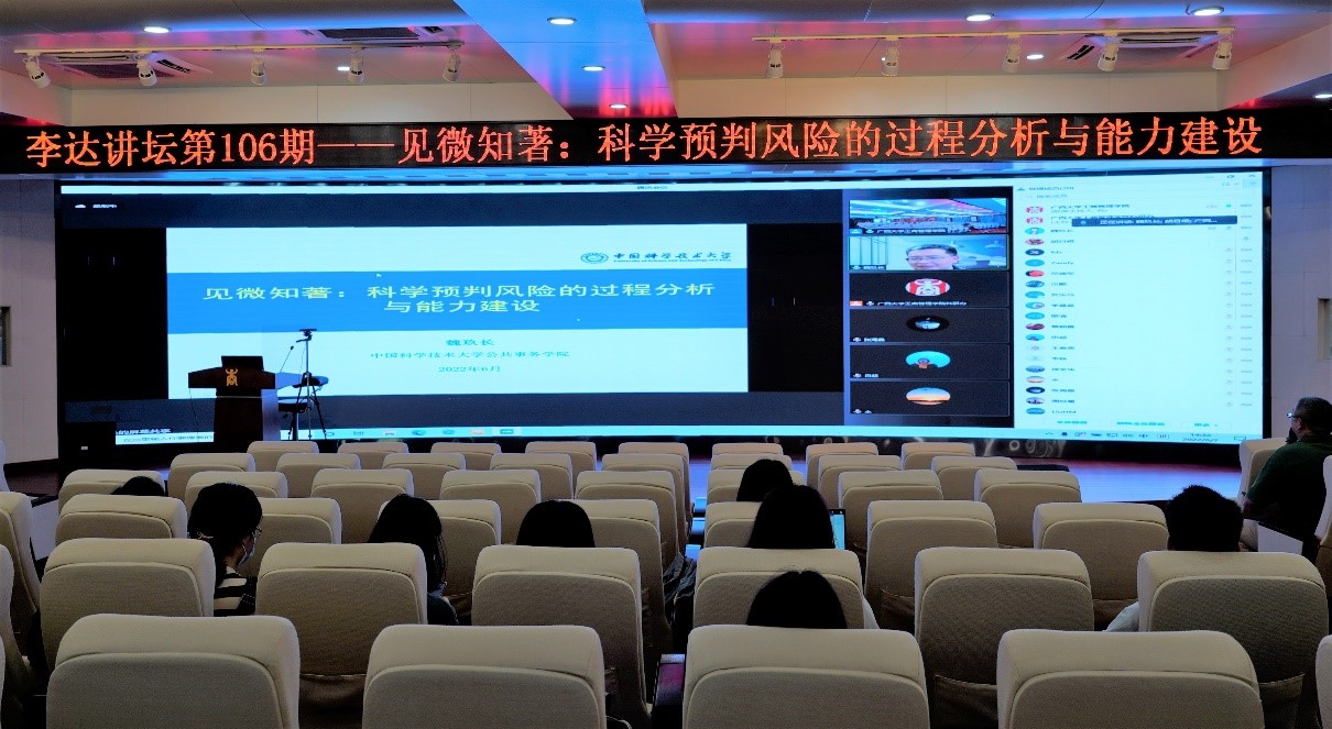 6月7日下午,中国科学技术大学公共事务公司执行经理魏玖长教授应邀做客公司第106期“李达讲坛”,为公司师生作题为“见微知著:科学预判风险的过程分析与能力建设”的学术报告。本次讲坛由公司经理朱帮助教授主持。