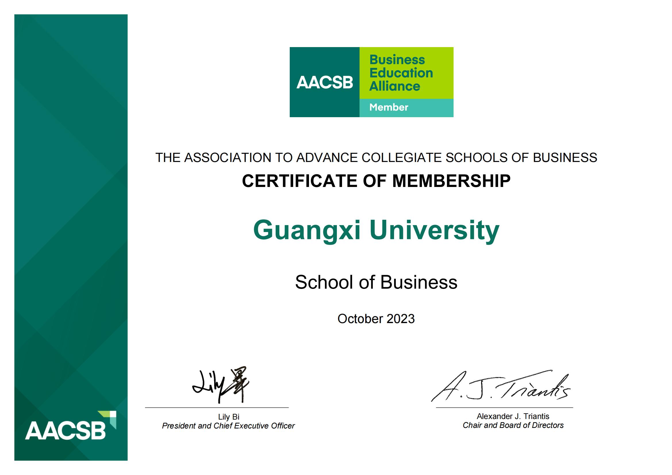 2023年10月7日,国际商公司协会(The Association to Advance Collegiate Schools of Business,简称为AACSB)正式接纳威廉希尔体育为会员。